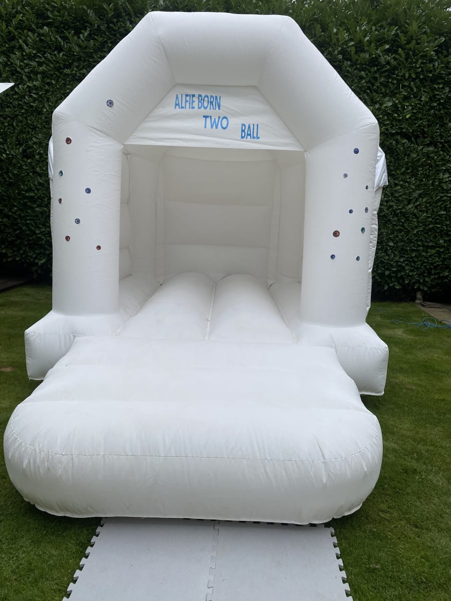 Looking for reliable bouncy castle hire in London, Hertfordshire, Essex, Buckinghamshire? We've got you covered! Our professional team is committed to delivering exceptional service, ensuring your event goes off without a hitch. We're dedicated to making your special day unforgettable with our pristine Small White Castle.
