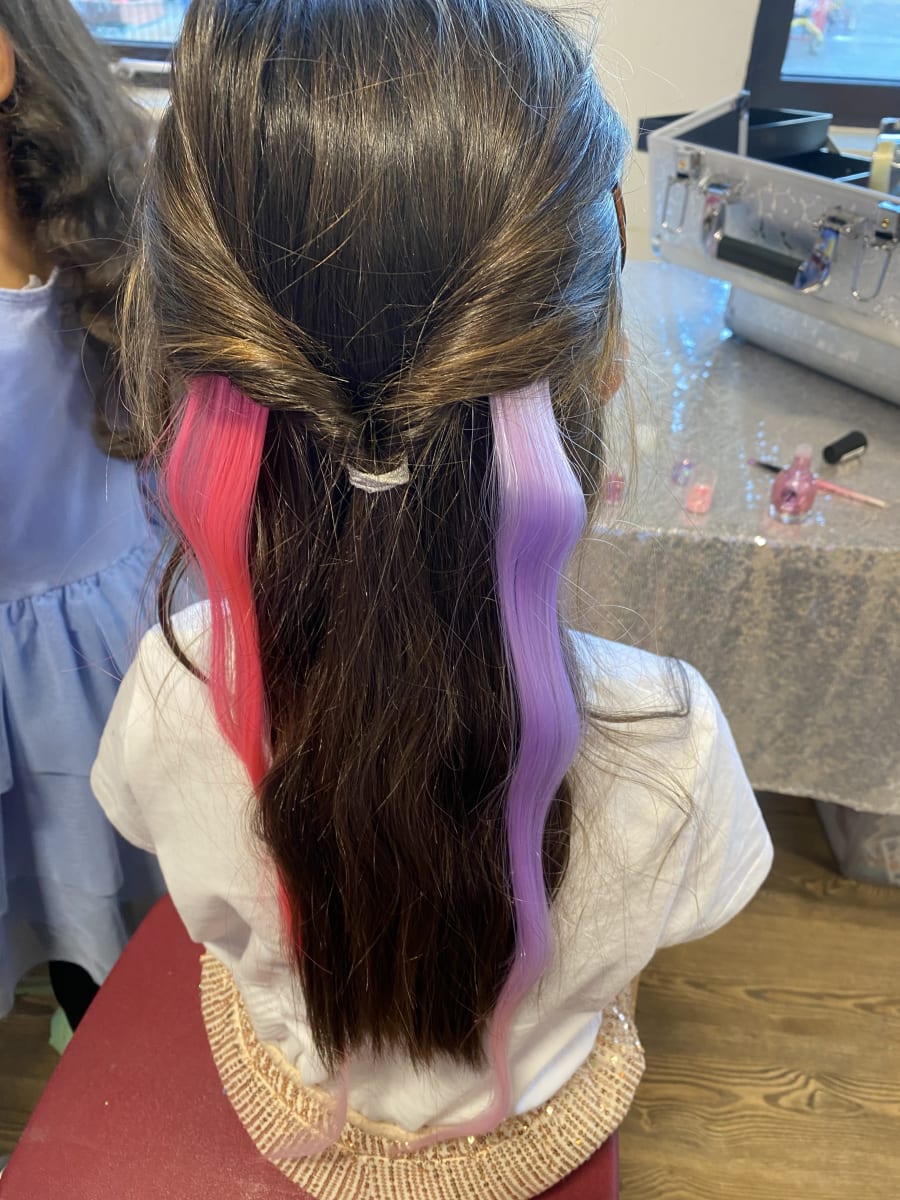 Our Glitter bar, nail bar, hair colour clip bar in London, parts of Essex, Hertfordshire, and Bucks is designed to fit seamlessly into any event setting. Each child will enjoy a complete makeover with sparkling glitter, vibrant hair clips, and chic nail designs. We provide everything needed to ensure your event is a shimmering success. ✨🎨